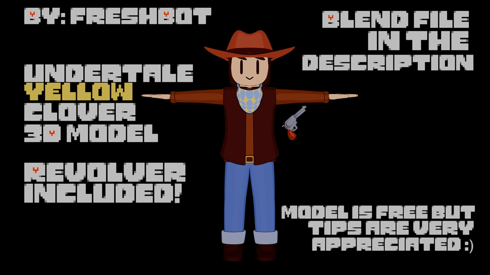 Blender file containing a rigged 3D model of Clover from Undertale Yellow